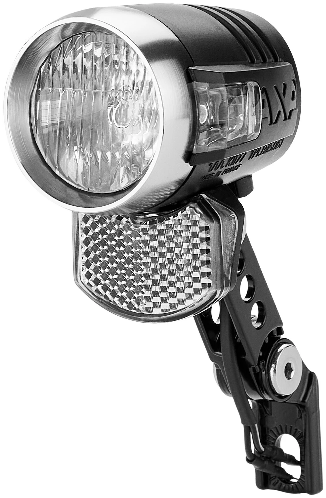 De robuuste stalen beugels zijn geschikt voor elk type weg. De lichtpositie is variabel instelbaar. De koplamp kan ook worden vervangen door een van de speciaal ontworpen beugels op de meest gangbare voorvorken.