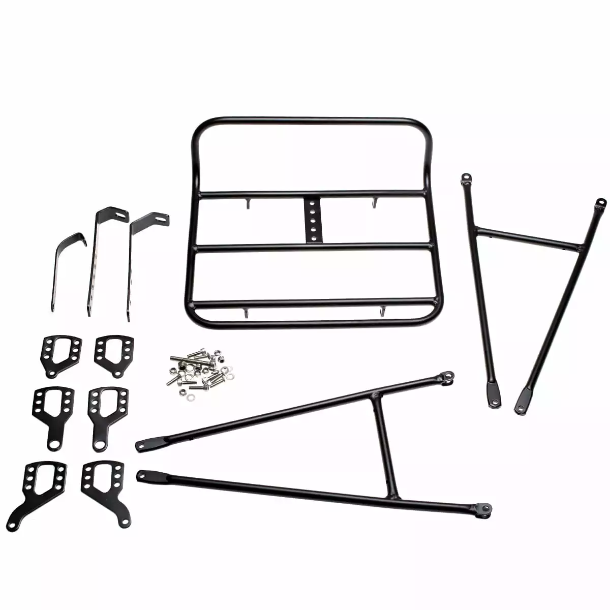 Het BLB T-Rack is een ouderwets voorrek dat ideaal is voor dagelijks gebruik of langere tochten. Je kunt er alles op gooien, van boeken tot boodschappen, van afhaalmaaltijden tot een 4-pak bier, en er toch schitterend uitzien met je fiets. Het universele, heavy duty wielbevestigingssysteem betekent dat het de slimme keuze is voor elke fiets – 26”,28” en/of 29”/700c wielen. Hij wordt geleverd met drie verschillende bevestigingen, is compatibel met standaard massieve assen en kan ook worden gemonteerd op vorken met bevestigingsogen voor bagagedragers of spatborden. De BLB T-Rack is stijlvol en functioneel en het belangrijkste, het zal niet breken uw bankrekening.