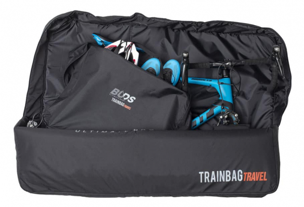 Een spoorwegstandaard fietstasDe nieuwe Buds TRAINBag Travel is een spoorwegstandaard fietstas (120 x 85 cm) die ook gebruikt kan worden om een racefiets, mountainbike of e-bike veilig te vervoeren en op te bergen.Verwijder eenvoudigweg de twee wielen en plaats ze in de daarvoor bestemde vakken. Zo is uw apparatuur perfect beschermd. Door de voldoende hoogte van de tas kunt u uw zadelhoogte* behouden, enhetstuur van de mountainbike kan worden verwijderd/verschoven/opgeheven, afhankelijk van de grootte van het stuur/fiets. Een optionele universele fietssteun biedt bescherming aan de aandrijving,en voor volledige bescherming gebruikt u de optionele vorkbeschermer. Metde opbergtas kunt u al uw spullen en gereedschap in de tas bewaren. Voordelen