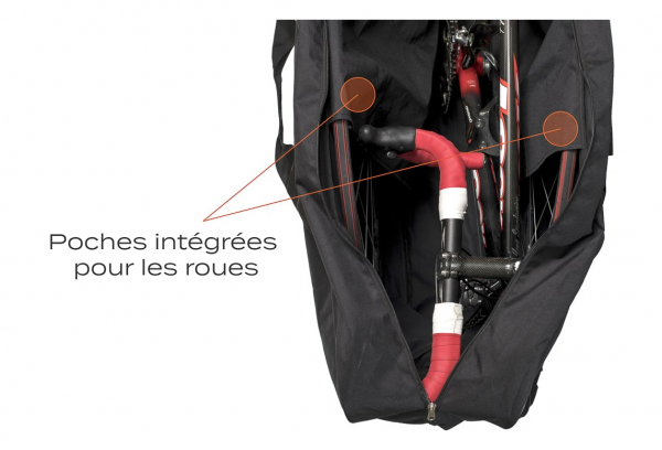 De wielen zijn goed beschermd in de grote gewatteerde zakken