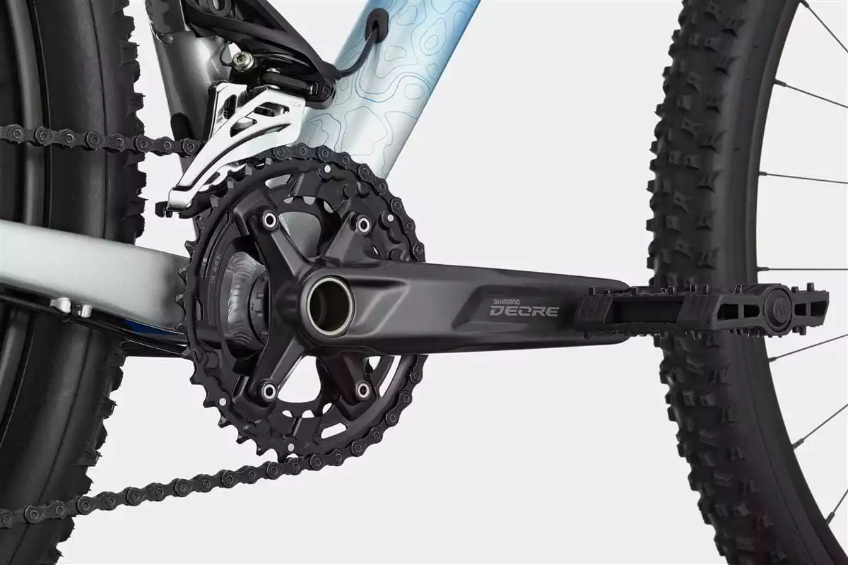 - Shimano Deore 10-speed aandrijving, crankstel met 2Â kettingbladen