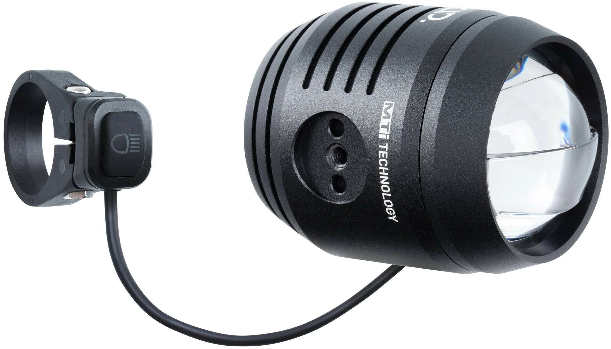 Maximale verlichting voor uw e-bike – maakt niet uit op welk terrein! De ACID e-bike koplamp PRO-E 140 High Beam heeft een echte grootlichtbundel en een uitstekende verlichting dankzij de lens met MTi-technologie. Gebruik de knop op het stuur om de grootlichtfunctie te activeren en laat het licht vervolgens in de verte schijnen met 140 lux en 1100 lumen. Met de 130 cm lange lichtkabel met stekker voor BOSCH motoren is de aansluiting op de e-bike een fluitje van een cent. Inclusief stuurbevestiging voor 31,8 en 35 mm diameter, GoPro-compatibele universele adapter en vorkbevestiging voor flexibele montage. Dat is hoe je de oorlog verklaart aan de nacht.