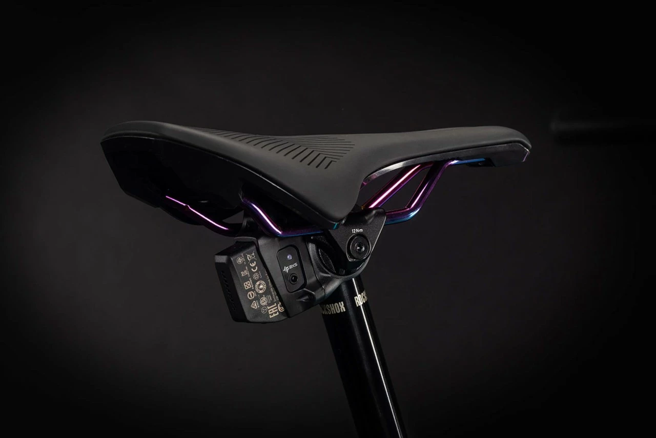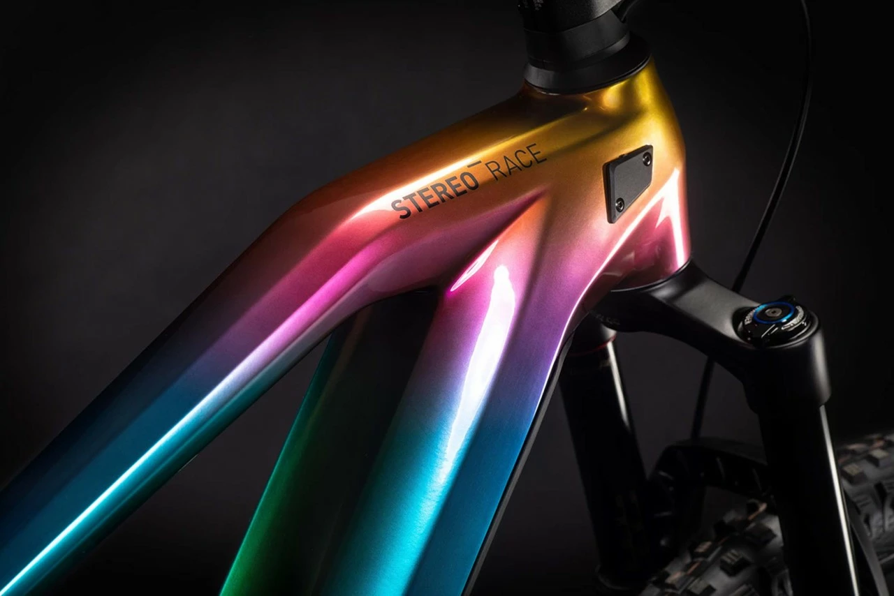 De Stereo Hybrid 140 zet een nieuwe maatstaf voor all-mountain e-bikes. Het high-performance carbon frame maakt indruk met zijn zeer functionele chassis kinematica. Of het nu gaat om met wortels bedekte passages bergop of snelle of blokkerige afdalingen – de achterdriehoek reageert gevoelig en zorgt voor indrukwekkende controle en soepelheid. Dankzij de Agile Trail-geometrie kun je ook op bochtige trails soepel de bocht om. Grote, robuuste lagers en een brede Boost 148 achtervork zorgen voor een hoge stijfheid en nauwkeurig stuurgedrag. De elegant en slim in de onderbuis geplaatste accu is perfect beschermd tegen opspattend water en kan snel en eenvoudig worden verwijderd. Een frameslot geeft dieven geen kans.