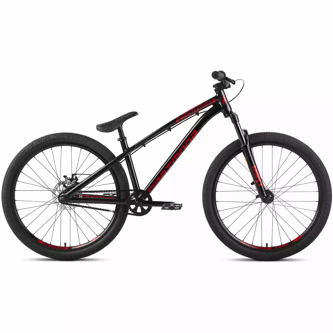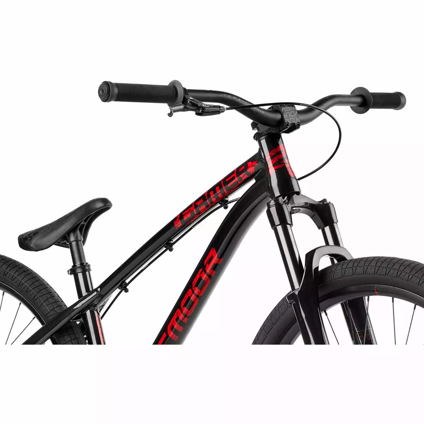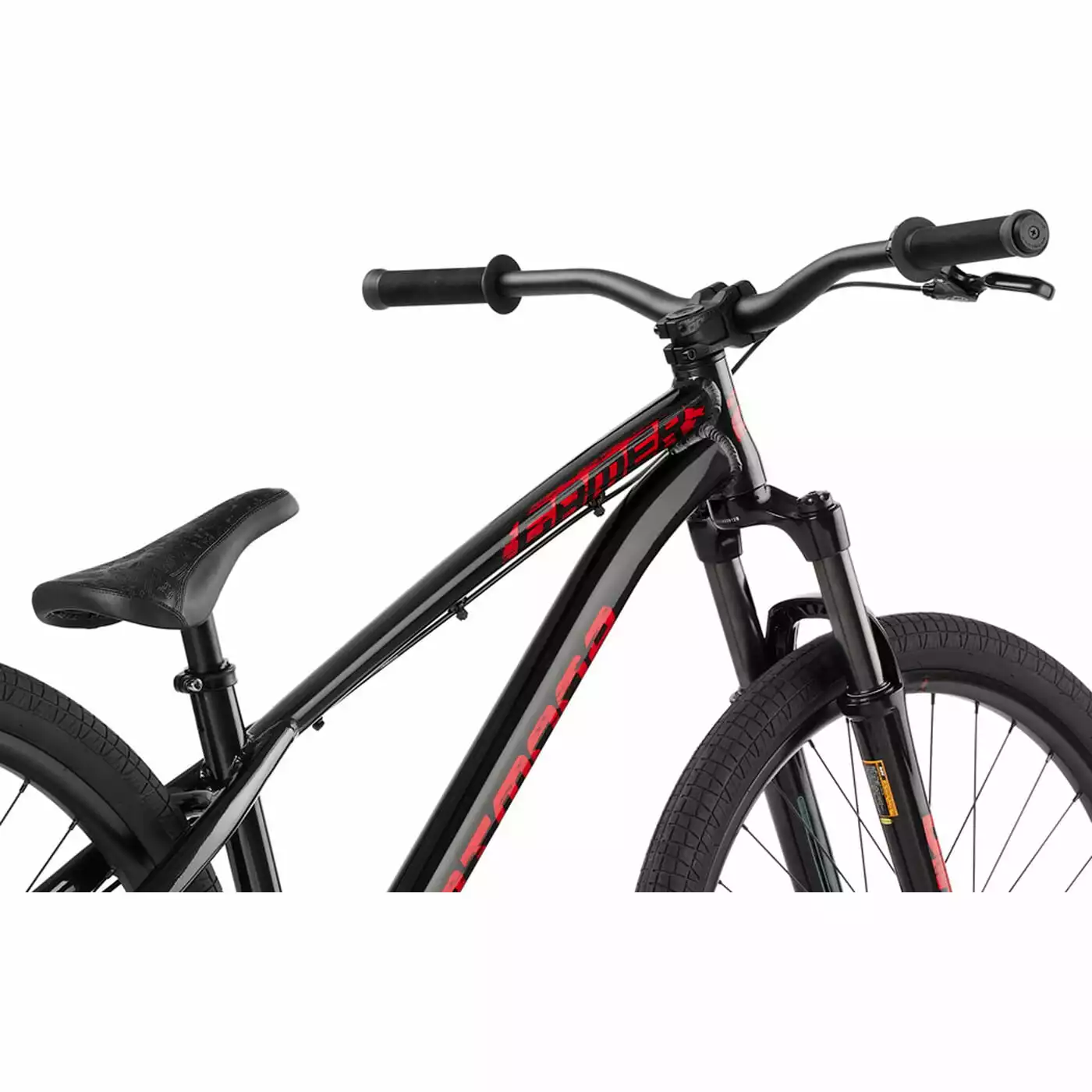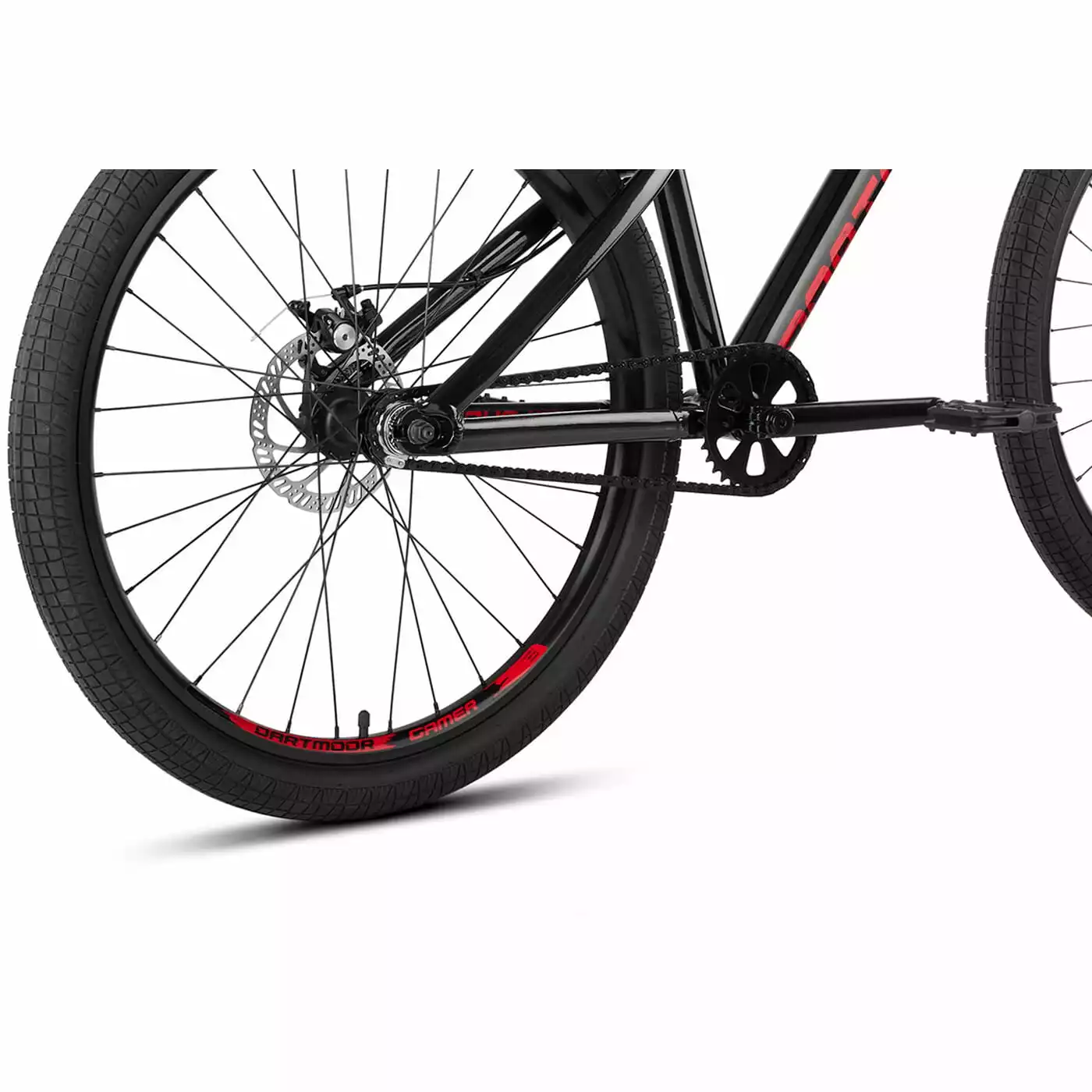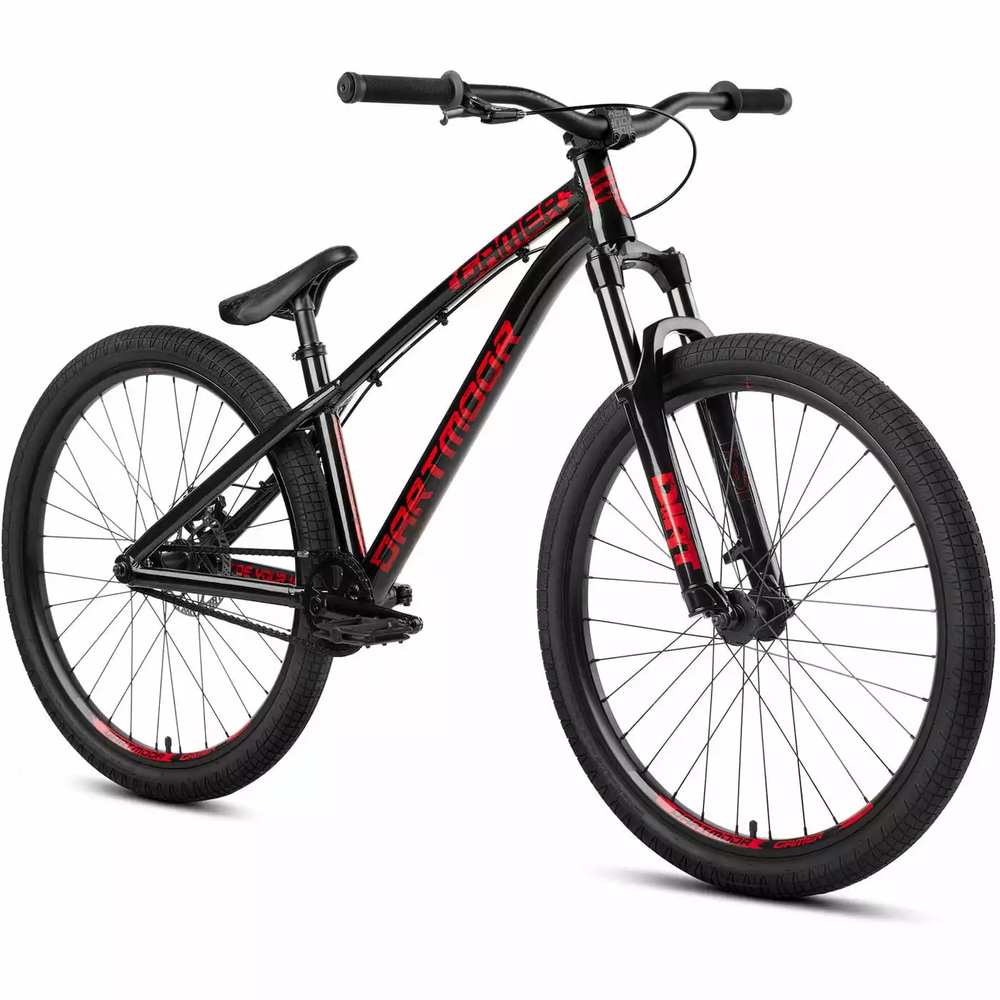 Het stevige aluminium frame heeft een iets langere framedriehoek, nieuwe buisprofielen en coole dirt style graphics. De RST verende voorvork biedt 100 mm veerweg om landingen op te vangen. De in-house add-on onderdelen zorgen voor een klassieke Dirt look en prestaties: een BMX-style crank, dubbelwandige velgen en de stabiele cockpit met 710 mm breed Dartmoor Tornado stuur en korte Fury stuurpen.