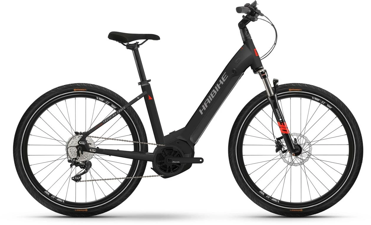 Haibike Trekking 6 Cross Matte Blk Red Reflex E-Bike Crossfiets Lage Instap