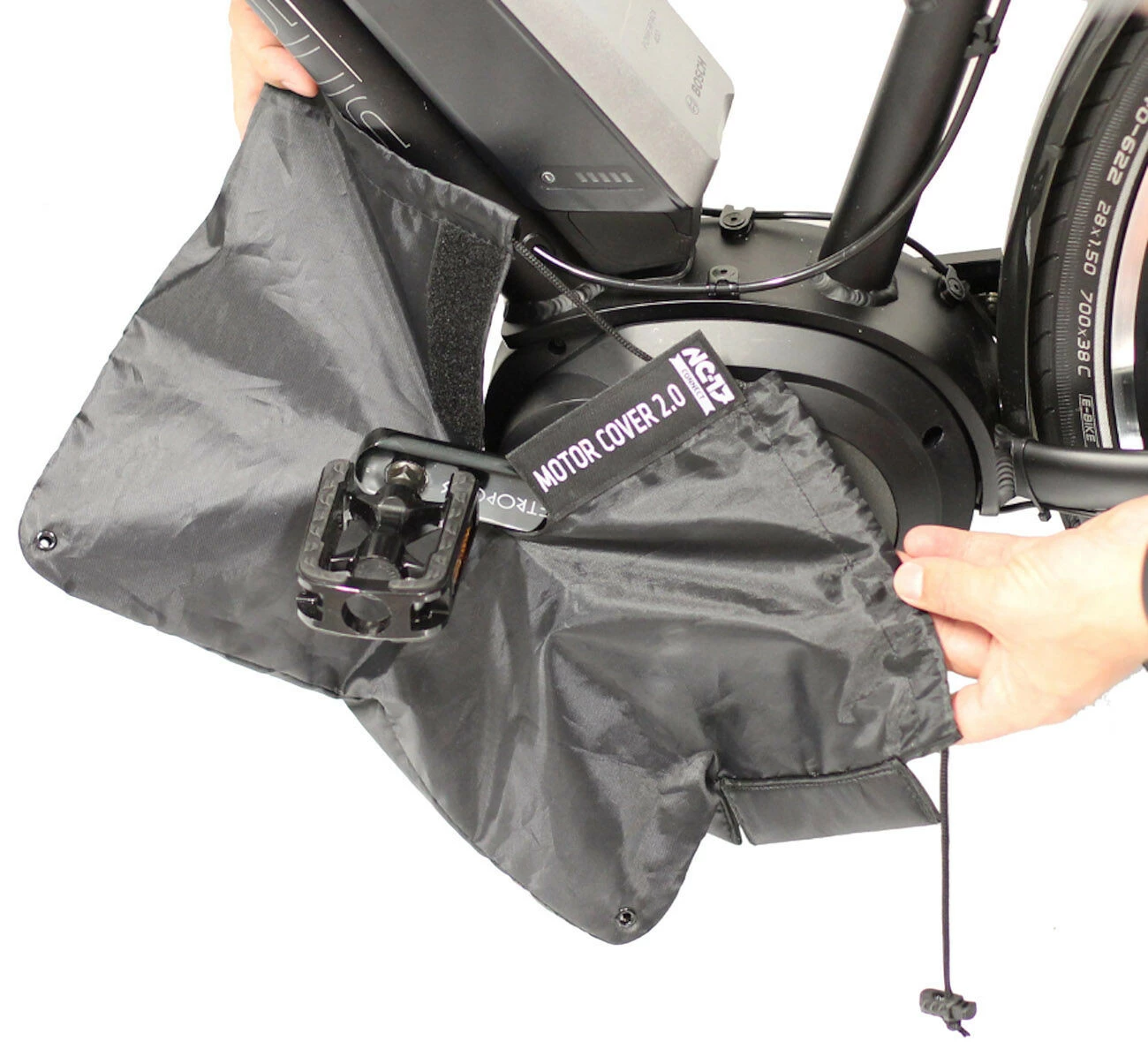 De nieuwe NC-17 motorkap om het meest waardevolle deel van de e-bike te beschermen. De universele beschermhoes van waterdicht nylon beschermt alle gangbare middenmotoren tegen spatwater bij het transport van de e-bike op het autodak of de achterzijde.