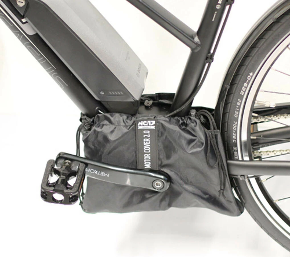 De nieuwe NC-17 motorkap om het meest waardevolle deel van de e-bike te beschermen. De universele beschermhoes van waterdicht nylon beschermt alle gangbare middenmotoren tegen spatwater bij het transport van de e-bike op het autodak of de achterzijde.