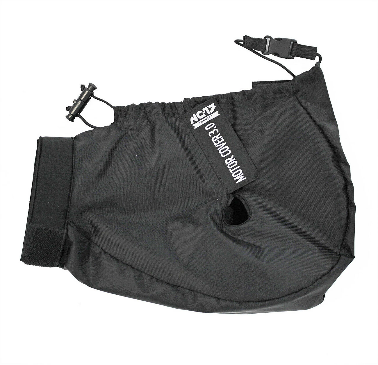 De universele motorkap van waterafstotend nylon is een spatbescherming voor e-bikes met middenmotor en geïntegreerde accu. Het beschermt de motor tegen spatwater en directe waterstoten bij het transport van de e-bike op het dak of de achterkant van de auto.