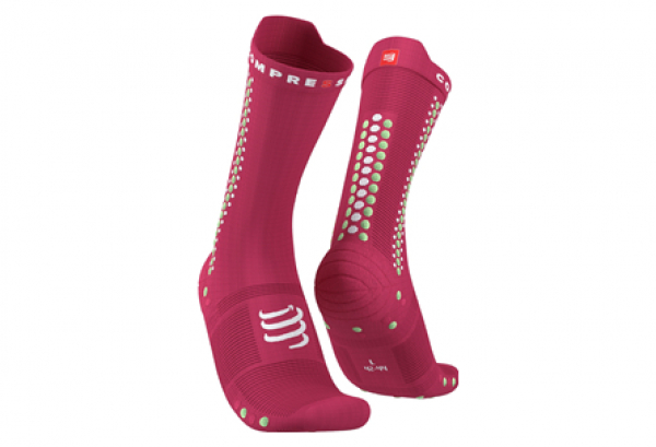 De kleur, lengte en het ontwerp van fietssokken is een constante bron van discussie onder fietsers. De vierde versie van de Pro Racing Socks Bikespeelt in op de Compressport manier van werken, met stijl en technologie! De stof is zeer geventileerd dankzij grote ventilatiezones die zweet en vocht afvoeren zodat de voeten altijd koel en droog blijven.De microfiber stof is zacht en aangenaam en omsluit de voet ergonomisch, terwijl de naadloze bovenband voorkomt dat de sok afzakt zonder de kuit te comprimeren. Aan de zool bevorderen de 3D.dots en de speciale ondersteuning van de voetholte de bloeddoorstroming en de veneuze terugvoer, terwijl ze het weefsel op zijn plaats houden tijdens lange uren van darmbewegingen. De snit, hoger dan bij de trail- en racemodellen, biedt optimale ondersteuning. Tot slot zal het frisse en eigentijdse design van deze blauwe fietssok geen vlekken maken, noch in het peloton, noch in de kopgroep, noch in de koffiepauze. Technologies