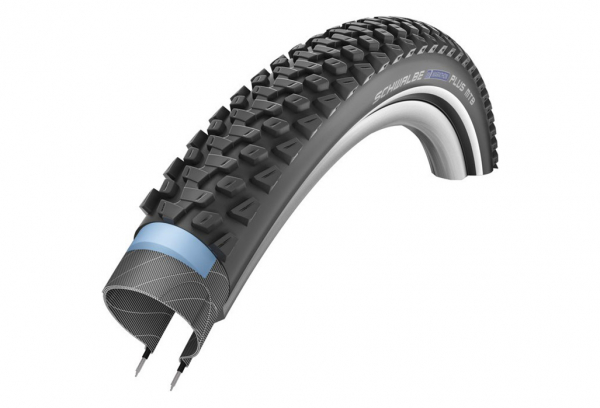 De Schwalbe Marathon Plus MTB band heeft een middenloopvlak voor de zwaarste trails en zijwanden met noppen voor voorbeeldige tractie buiten de gebaande paden. De SmartGuard-bescherming biedt een ongelooflijke weerstand tegen lekrijden dankzij de 5 mm dikke onderlaag van zacht rubber.