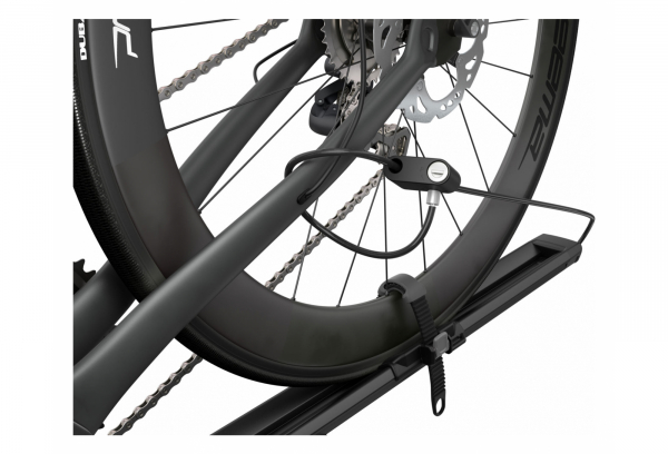Locks the bike to the bike rack and the bike rack to the roof racks.