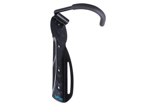 Allows a bicycle to be hung on the wall by its front wheel to save floor space. Attaches directly to the wall (fixing kit supplied). Steel hook covered with a rubber sheath to protect the rims and spokes.